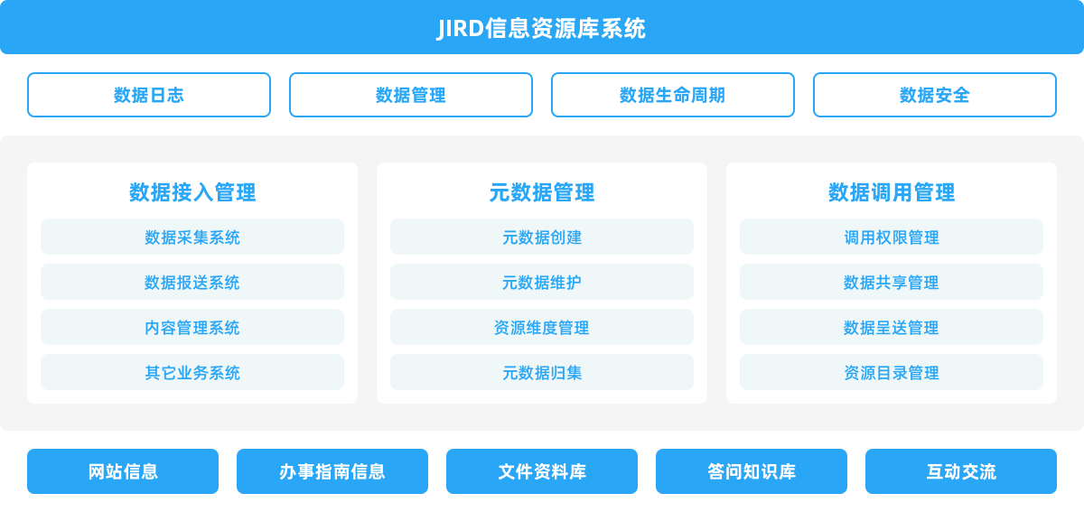 為了進(jìn)一步合理配置資源、優(yōu)化對信息資源的管理和利用,JIRD信息資源庫系統(tǒng)可增強(qiáng)信息資源的完整性、可用性和權(quán)威性,以改變目前信息資源管理不善、共享水平低、對跨部門協(xié)同和綜合類政務(wù)服務(wù)支撐不夠的現(xiàn)狀,保障對集約化門戶網(wǎng)站群信息資源的長效管理和合理利用,大幅提升數(shù)據(jù)管理效率、提供更多決策支撐。